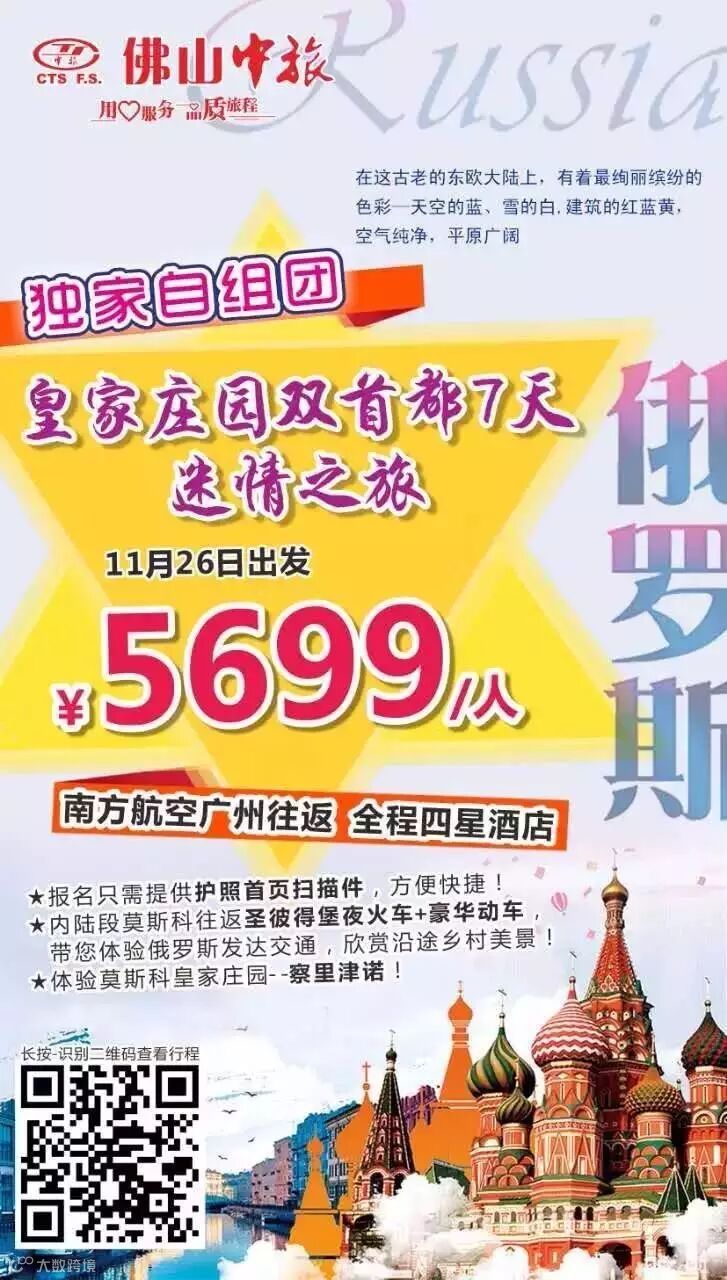 导读:俄罗斯皇家庄园双首都七天迷情之旅11月26日 独家自组 广州往返5699元线路特色乘坐中国南方航空客