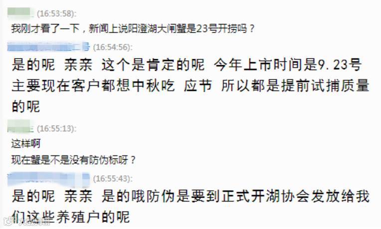 大多数提前供应大闸蟹的卖家,都会明确表示蟹脚不会有防伪标,而且现在是提前试捕的“尝鲜版”。