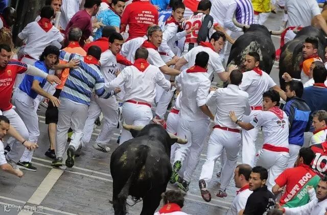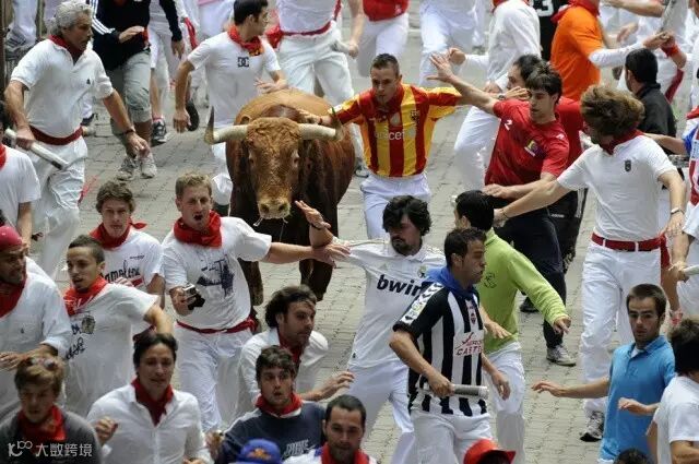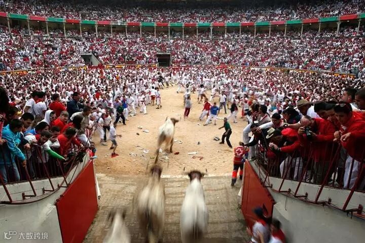 在节日的儿天里,每天都有凶悍的公牛追逐着数百名壮汉,沿着“奔牛之路”穿城而过,直奔斗牛场,场而极其惊心动魄。