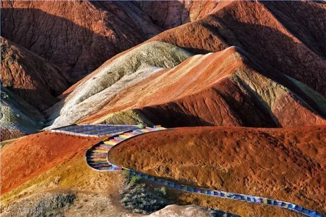 把祁连山雕琢得奇峰突起,峻岭横生,五彩斑斓,当地少数民族把这种奇特的山景称为“阿兰拉格达”,意为红色的山。
