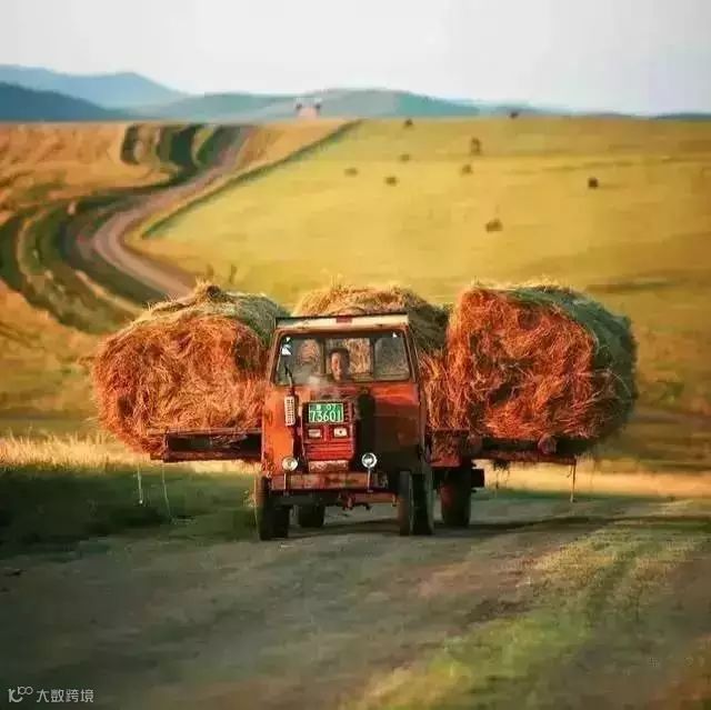 无边无尽的牧草与山坡上,树木极少,偶然有骑马或开摩托车的牧人出现,也不过茫茫天地里小小的一粒,偶有弯弯曲曲小河流经的所在,便有群马如风,牛羊下山。