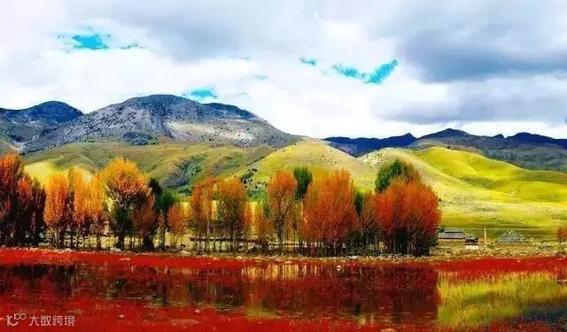 9、10月份红草地与黄色的万亩杨树林让稻城变成了色彩的海洋,雪山在蓝天白云的衬托下,更显梦幻。