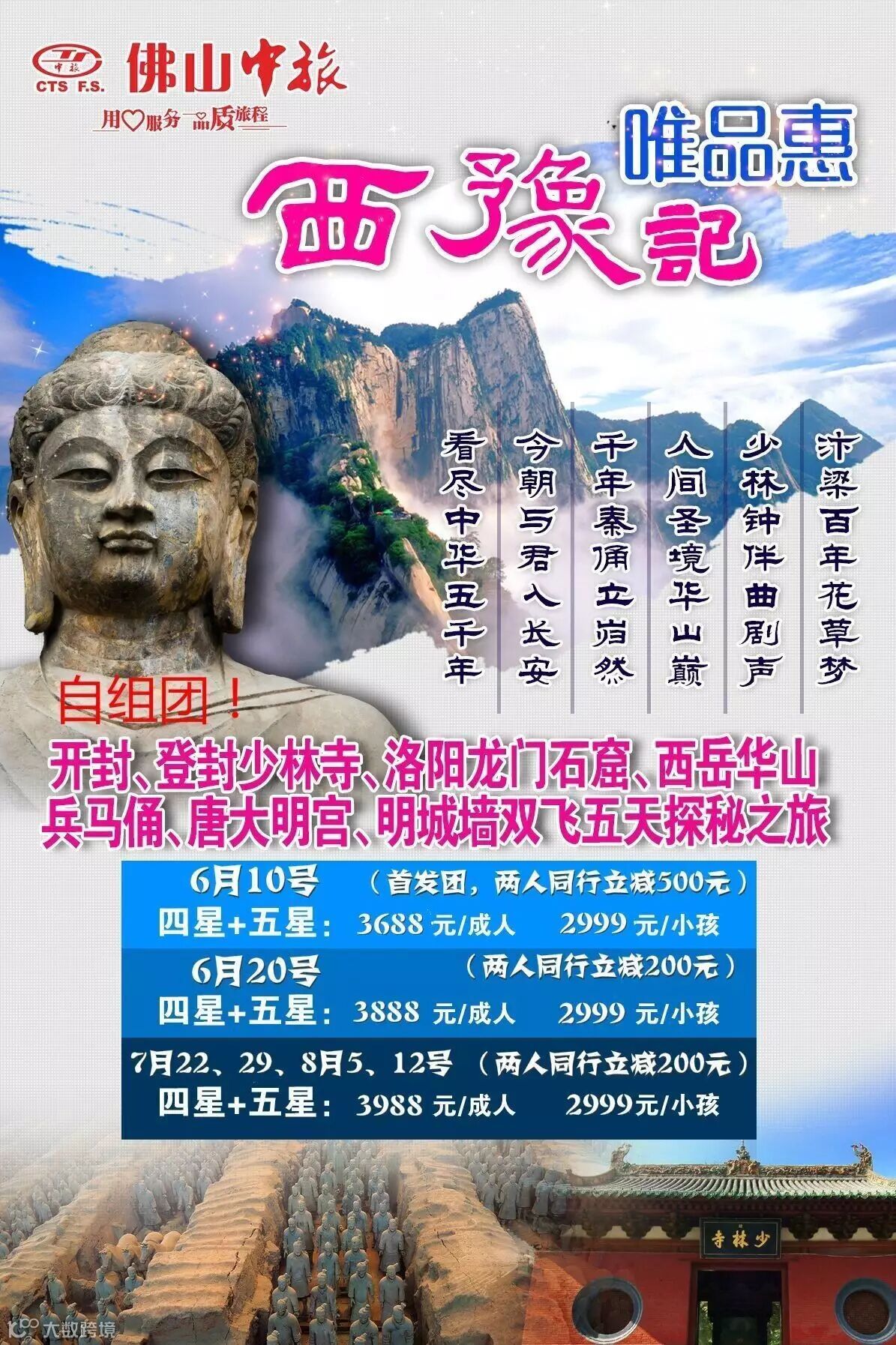 D2:郑州—登封—洛阳—华山(含早中晚餐) 住:洛阳