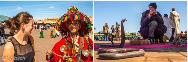 中世纪时期延续至今的马拉喀什街头艺术,使不眠广场充满沸腾活力,杂技、舞猴、小喇叭耍蛇…充满节奏的手鼓音乐,感染着每一位游客…
