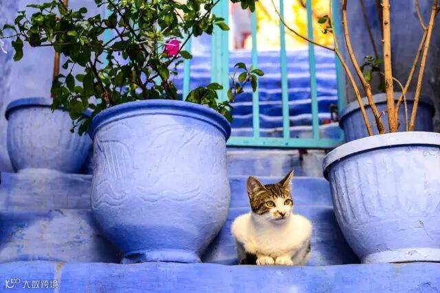 游走在蓝色的小巷子,到处都种有小花,道旁是各种彩色的地毯丝绸陶瓷等工艺品,由粉蓝的墙壁衬托,带来视觉的冲击。觉得这里的人都很有有诗意。到处都有小猫懒洋洋的趴着睡觉。6月的气温舒适温柔,游人不算多,密度刚刚好。整个人的感觉就像掉进童话的盒子里,有种不敢相信世界上竟然有这么美的地方。世人皆知爱琴海有圣托里尼,却不知摩洛哥还有舍夫沙万!