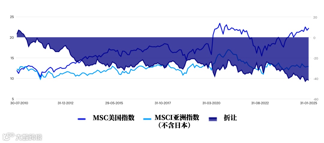 图3 – MSCI中国指数与MSCI美国指数的远期市盈率比较