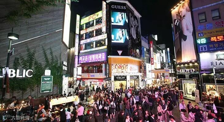 弘大街上到处可见体现年轻人感性及文化倾向的咖啡屋、酒吧及时尚用品店,从手工制品、怀旧情结、波希米亚风(Bohemian Style)到高级精品店等无所不有,风格各异。与之相呼应的是各种新主题的复合型文化空间,随时进行展示、公演及文化沙龙等活动,可谓弘大的一大亮点。