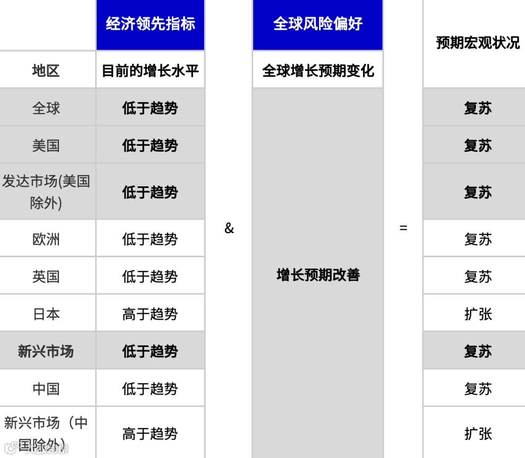 ● 我们仍然看好全球周期的复苏,而美国已经从扩张阶段回到复苏阶段,原因是领先指标回落至趋势水平以下。在通胀下降的同时,美国以外地区的经济增长继续改善。