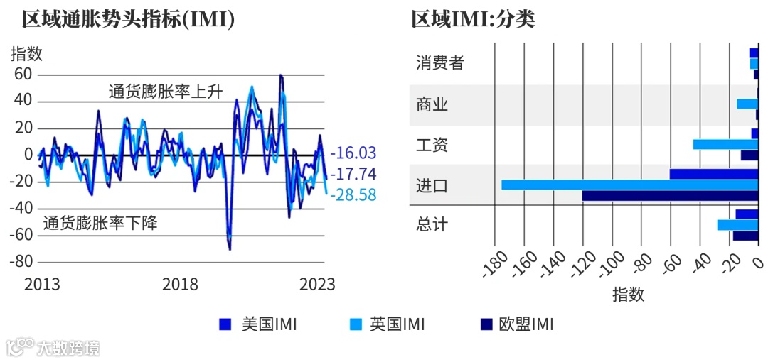 资料来源:Bloomberg L.P.截至2023年12月31日的数据,景顺集团解决方案计算。美国通胀势头指标(IMI)以过去三个月为基础衡量通胀统计数据的变化,涵盖消费者和生产者价格、通胀预期调查、进口价格、工资和能源价格等指标。正(负)读数表明,过去三个月通胀平均一直在上升(下降)。