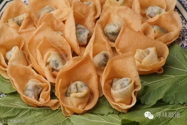 松脆浓香的桑叶云吞,咬下去表面是酥脆的,里面是蔬菜、桑叶等配料的香甜。