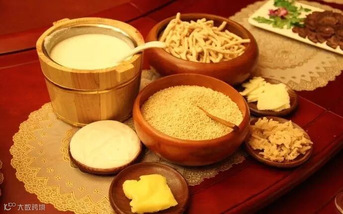 “舌尖上的内蒙古”蒙古传统奶制品、手扒羊肉、伴随着哈达寄情于草原。