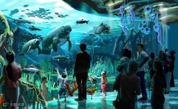 展馆高达63米,有珍奇鱼类多达15000条和长达4米的魔鬼鱼,五彩斑斓,景观震撼,让你终身难忘。。