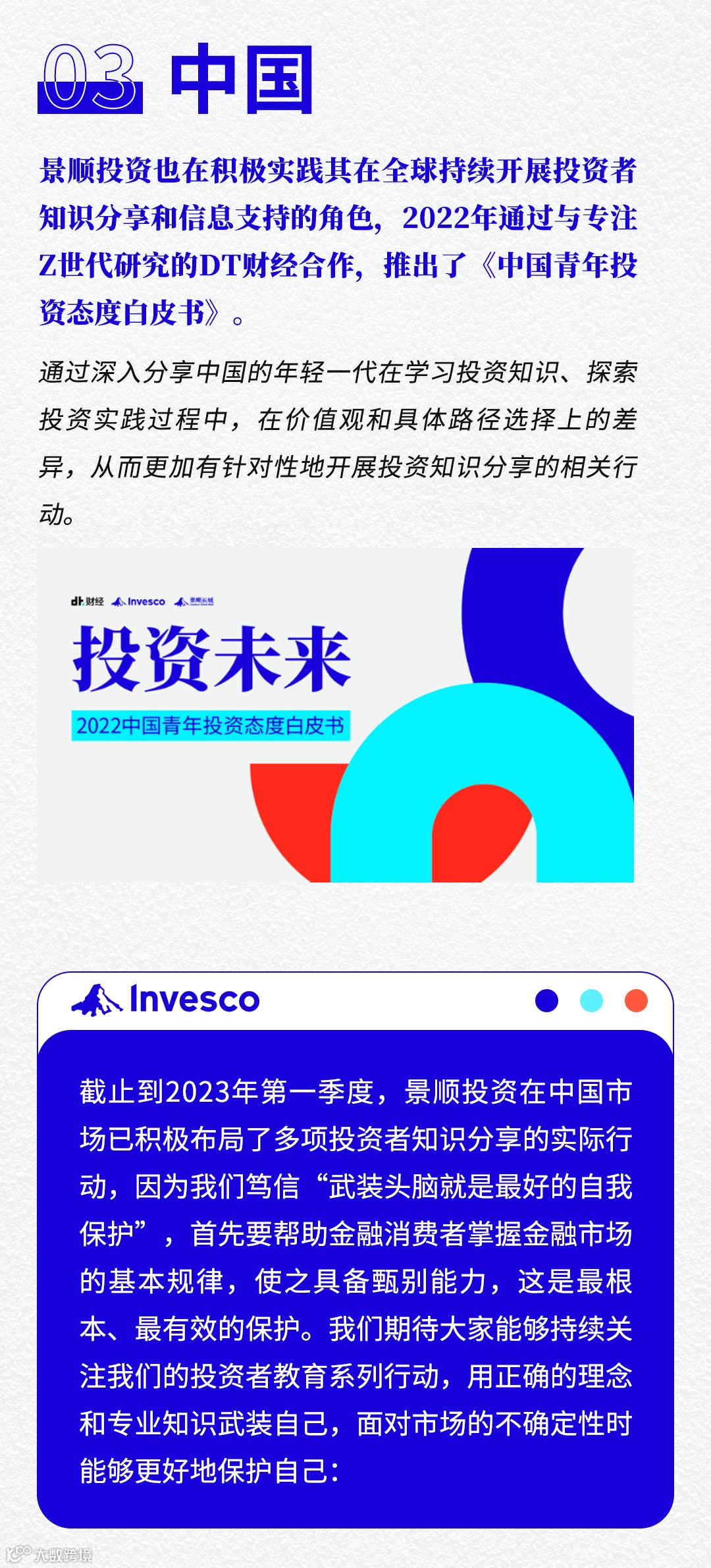 本文仅供参考,不构成在授权任何人在任何司法管辖区内的分销、买卖或招揽买卖任何证券或金融产品,也不导向出版或提供景顺上海的微信页面被禁止的司法管辖区内(由于该人的国籍,居住地或其他方式)的任何人。本文所载的信息可能会因应市场动态而改变,景顺不承担更新任何前瞻性声明的义务。实际事件亦可能与假设有所不同。本账号的内容版权归景顺所有,除非另有说明。版权所有。投资涉及风险。景顺或其附属公司或景顺或其附属公司的任何董事或雇员不对任何人依赖此类信息而造成的任何损害或损失(无论是侵权行为或合同或其他方式)承担责任,也不对任何错误或遗漏(包括但不限于第三方来源的错误或遗漏)承担责任。