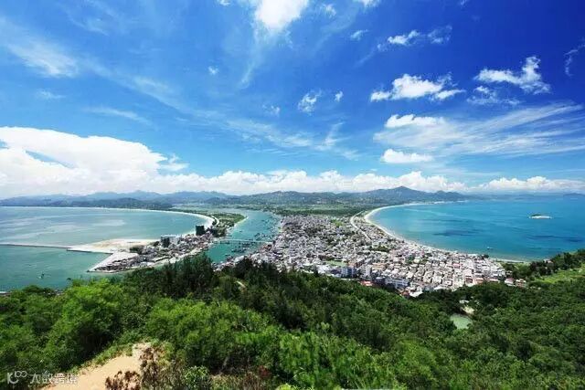 双月湾因形状鸟瞰像两轮新月,故名双月湾。位于惠州市惠东县港口滨海旅游度假区管委会(原港口镇)。双月湾共分两湾,由大亚湾和红海湾相邻的两个半月形组成,由于风向原因,形成了左湾水色不清,右湾水清见底的景色。两条沙垅直奔大星山,如蛟龙出海,似双龙戏珠,有静有动,十分壮丽。大亚湾畔的半月湾,微风细浪,阿娜多姿。