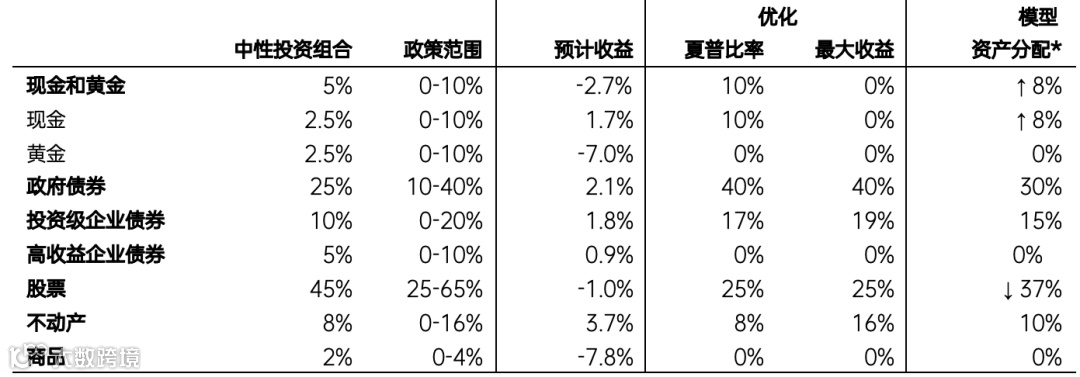 图②:预期总回报(年度化,当地货币)和模型资产配置