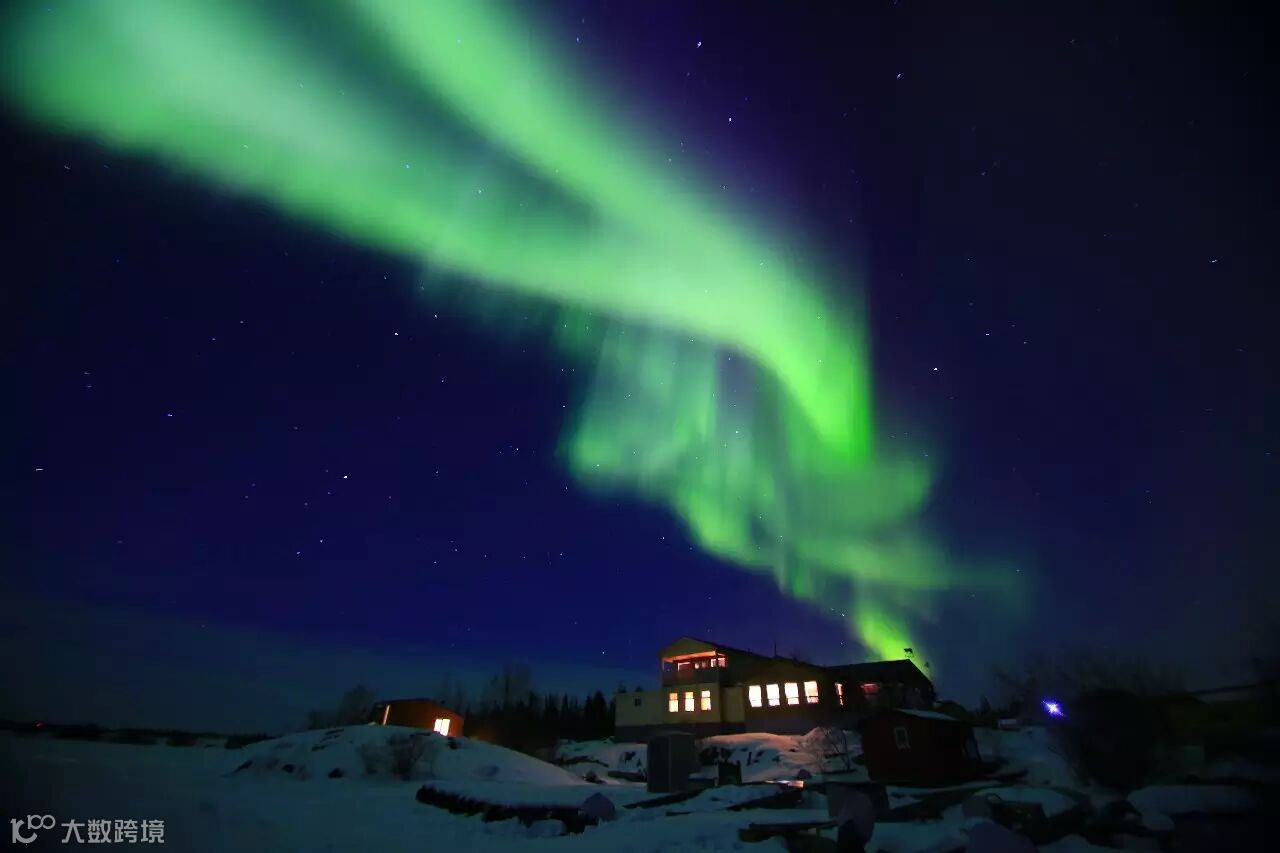 ★世界上观赏极光最佳场所之一黄刀镇,位亍北极光光环黄刀镇,位于北极光光环中心,这一带北极光距地平线很近,仿佛伸手就能碰触!