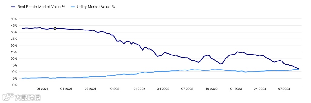 中所占的比例与公用事业部门所占比例相似
