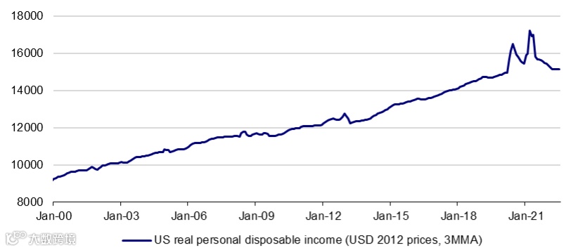 然而,欧洲和美国的实际收入受到挤压,这表明许多家庭和企业的日子不好过。图5显示,美国实际个人可支配收入目前低于长期趋势(受到与新冠相关的政府支持推动)。由于现在储蓄缓冲大幅减少,金融市场动荡损害了财富,我们预计美国消费者支出将在2022年下半年减速。这可能会延长美国已经出现的技术性衰退(2022年前两个季度的 GDP都在下降)。