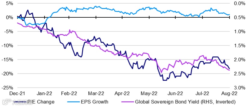 图12:分解的全球股本资本回报率与债券收益率YTD