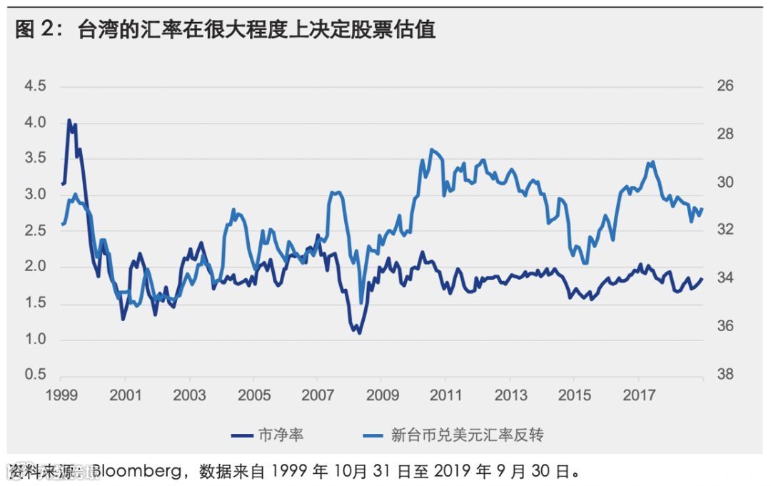 对于估值变化,其中一项重要考虑内容是确定对各个股票市场的估值会产生巨大影响的宏观经济因素。我们的研究显示,通货膨胀和利率(无风险利率)对于确定美国等发达经济体的资产估值具有决定性作用,而对于韩国和中国台湾等出口型经济体,外汇在估值中的作用更大(图 1 和图 2)。