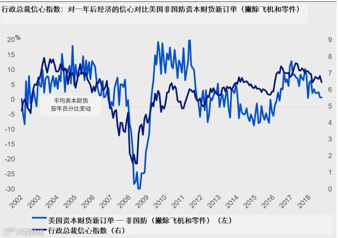 图1显示当美国商业信心动摇时,以资本品订单为代表的商业投资增长转弱。