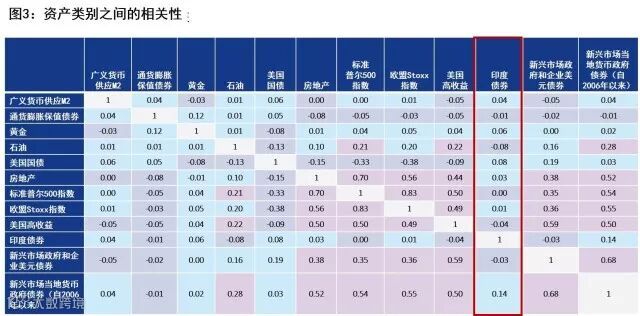 除了回报潜力外,印度债券也提供分散投资效益。印度债券与全球主要资产类别的相关性不高,例如商品、发达市场股票或房地产(图3)。印度固定收益证券设有外国持有量限制,是当地与全球市场走势分歧的原因之一。外国投资者必需向印度证券交易委员会注册,而且投资额度受到限制。然而,高需求量促使当局定期扩大投资额度,例如2017年10月到12月期间的政府债券投资额度增加了800亿卢比(12亿美元)到2.5万亿卢比。[4]