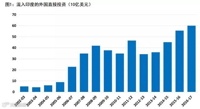 莫迪的竞选承诺包括提高印度的营商便利程度。全球投资者似乎对这个新经济方向抱有期望。在2016年至2017年,印度暂时取得600亿美元的外国直接投资,资金流入连续第四年增加(图1)。