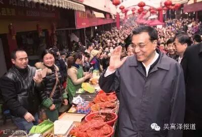国家总理李克强在黎平大市场与市民亲切的互动。
