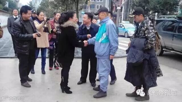 影视元老李雪健到黎平三中,校长杨芬忠门外迎接。