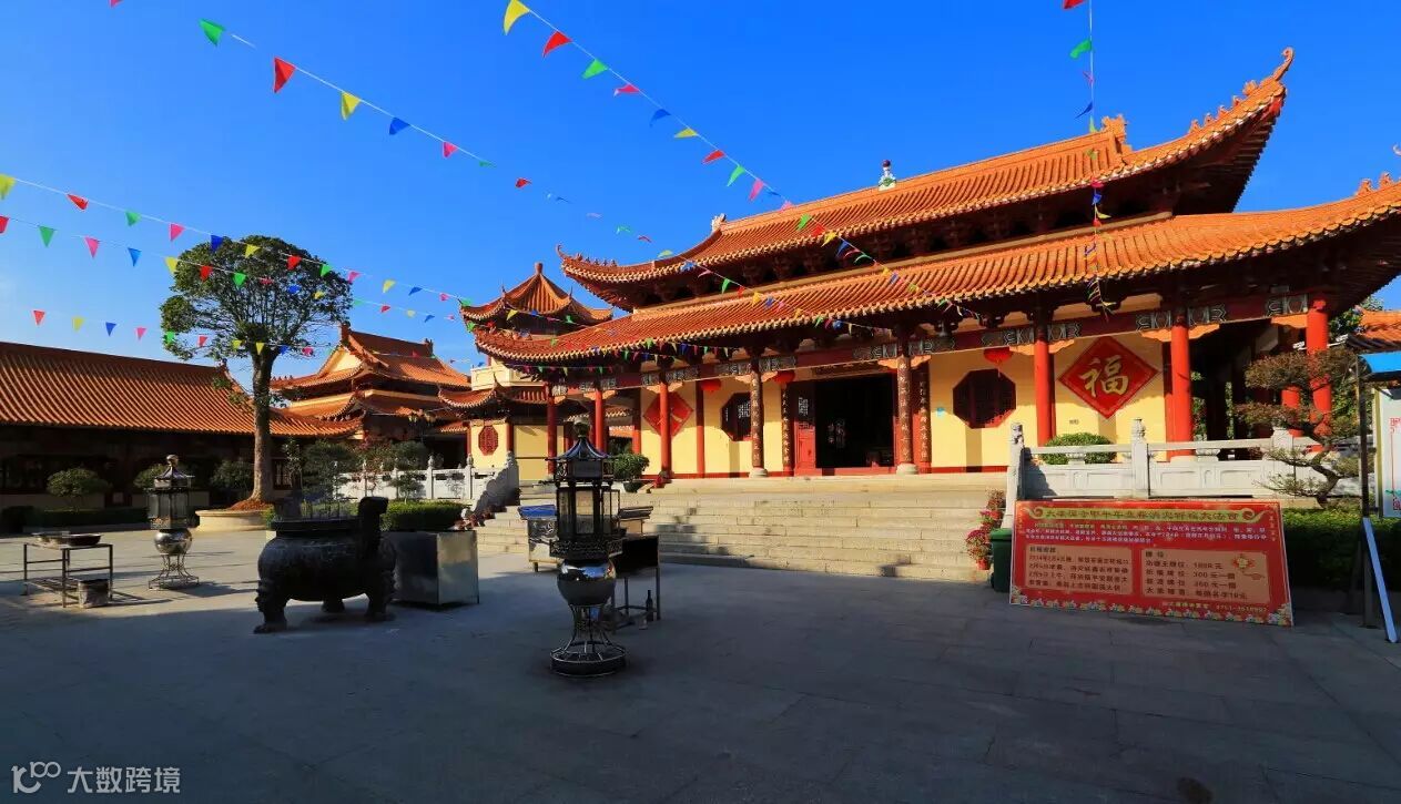10:00--11:30 后参观【大雄禅寺】初名沙水院,后称沙水寺,始建于公元1275年,至今已有700多年的历史。1998年,南雄市政府礼请本焕老和尚主持规划重建,规划重建的大雄禅寺占地10万余平方米,总投资约2亿元人民币。当日落成开光的三圣殿及文殊殿、普贤殿,由本焕长老生前筹资兴建并亲自奠基。经过近十年的建设,三个大殿终于落成并将接受广大信众朝拜。投资近5000万元人民币的三圣殿殿高39.8米、建筑面积逾千平方米。殿内供奉着3尊高22.8米、近200吨重的铜铸佛像--阿弥陀佛、观世音菩萨和大势至菩萨。据大雄禅寺方丈印彻大和尚在开光仪式上介绍,这3尊佛像是目前国内最高的室内西方三圣佛像,被誉为"中华第一西方三圣"佛像。(时间约1小时)。