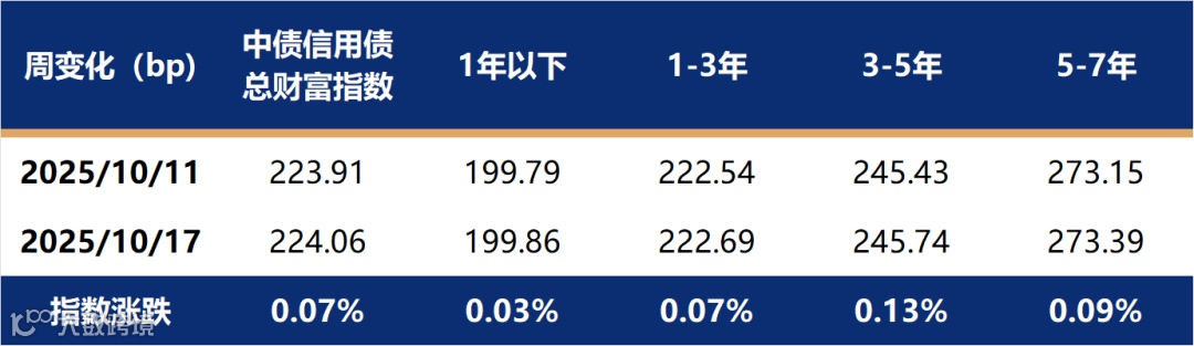 上周,信用债跟随利率债缓慢修复,其中长久期高资质信用债收益率下行幅度较大,中债信用债总财富指数上涨0.07%,其中3-5年指数涨幅相对较大。