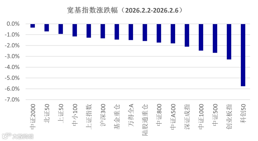 上周A股市场先抑后扬,全周主要指数均出现较大幅度的探底反弹,投资者情绪受到流动性和大宗商品价格因素扰动较大,主要宽基指数均有回落。从风格维度看,指数的表现较为混乱,成长属性强的科创50跌幅最大,而同样科技占比高的北证50指数,在宽基指数中跌幅较小,仅为0.7%;小盘股指数中,中证2000指数跌幅最小,为0.3%,而中证1000和中证500指数跌幅为2.5%、2.7%。市场呈现出整体风险偏好回落的特征,风格表现弱,前期涨幅较高的板块调整压力大。上周市场成交活跃度边际回落但仍处于高位,万得全A指数日均成交为2.41万亿,两融余额有所回落,但仍然维持在2.66万亿。