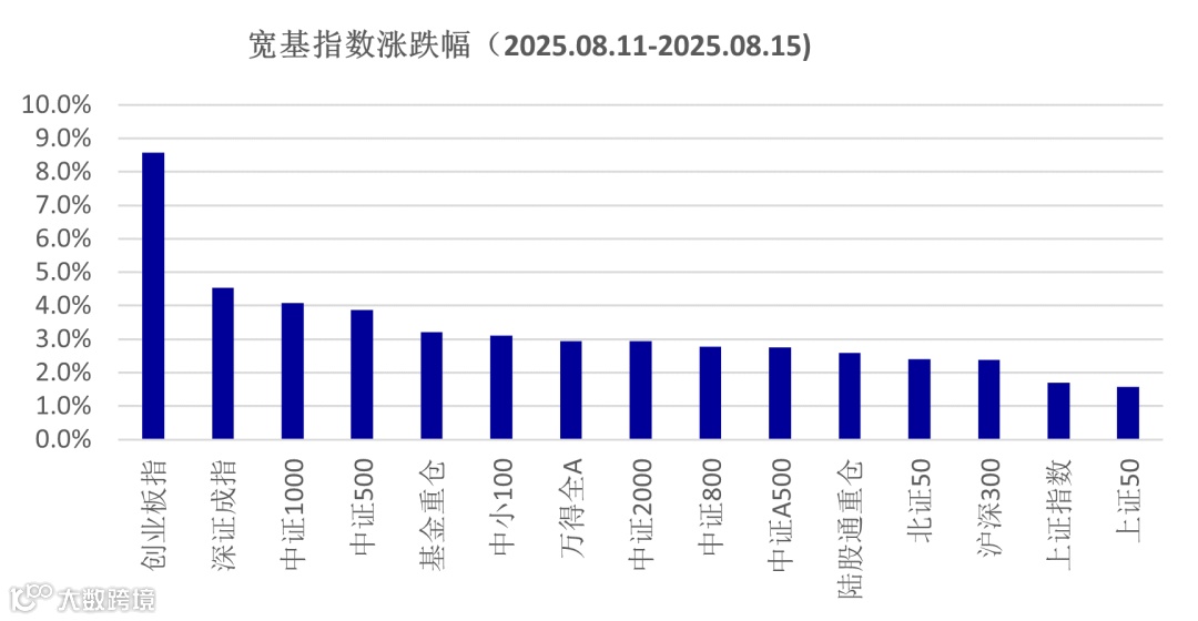 指数的进一步上行来自于投资对于政策的乐观预期,而短期对经济数据的敏感度下降。中美公布了瑞典贸易谈判的结果,暂停窗口展期90天符合预期,中美贸易磋商进入深水区,但又保留了“不脱勾”的底线。从二季度以来的进出口数据看,我国外贸的韧性强,虽然对美出口下降幅度较大,但整体出口持续正增长,加强了投资者对于经济的信心。美元在9月份降息的概率提升,增加了投资者对于流动性好转的预期,虽然国内在三季度降息概率不高,但居民和机构增配权益市场的动力增强,流动性充裕推升指数上涨。上周公布的金融数据和经济数据,均显示出经济内生动能承压,但其对市场的影响并不大,市场交易政策底之下的盈利改善,对短期的“弱现实”有更大的包容度。