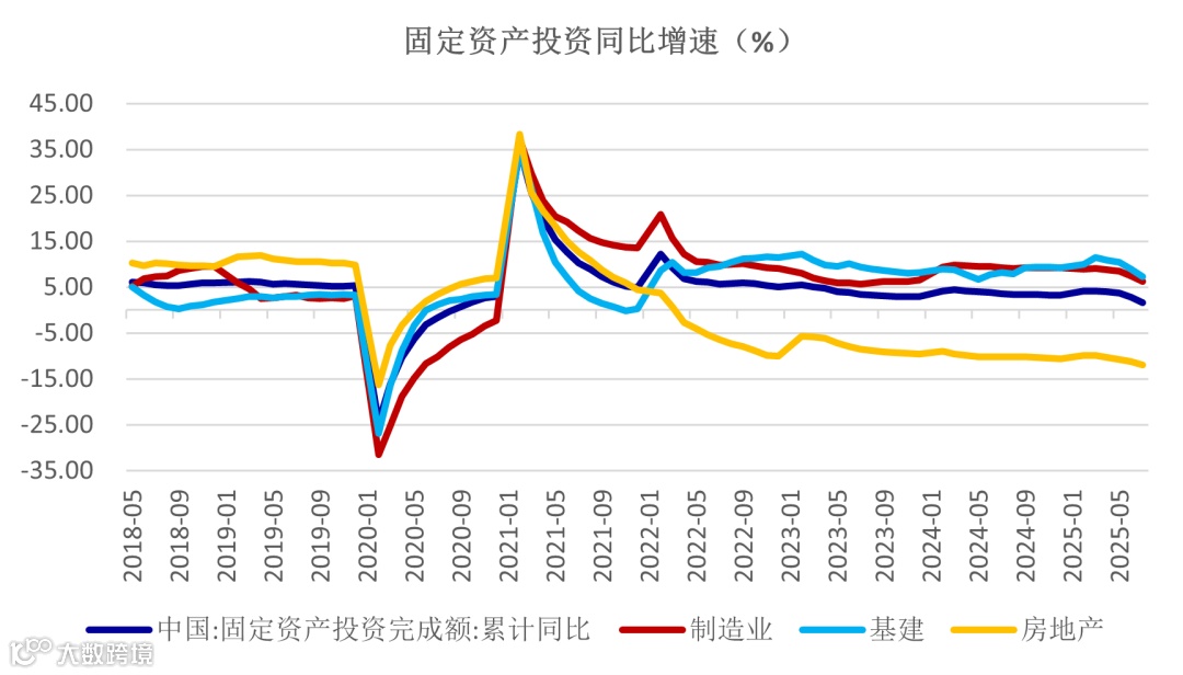 上周统计局公布了我国7月份投资和消费数据。固定资产投资增速下滑明显,从分项数据看,房地产的负向拖累进一步加大,累计增速从1-6月份的-11.2%,继续下探至-12.0%,基建与制造业的投资增速也边际下降,累计增速分别从8.9%、7.5%回落至1-7月份的7.3%、6.2%,仍然高于二季度GDP数据,是固定资产投资增速的拉动项。但受到地产的影响,固定资产投资增速下滑至1.6%。从目前的销售数据看,三季度房地产市场依然不乐观,预计下半年仍是经济的拖累因素,关注后续房地产相关的政策措施。