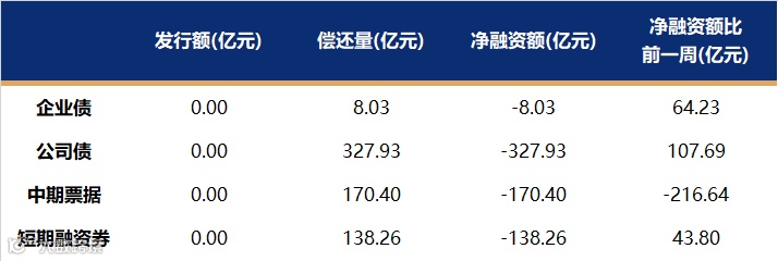 非金融企业短融、中票、企业债、公司债发行量、偿还量、净融资额(与前一周比较)