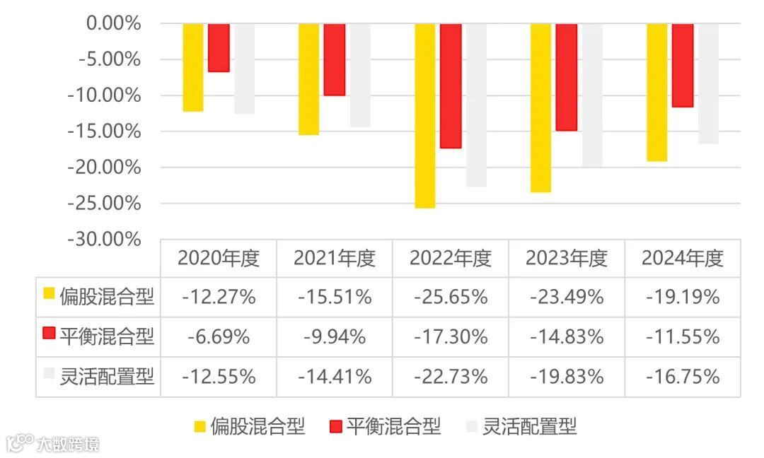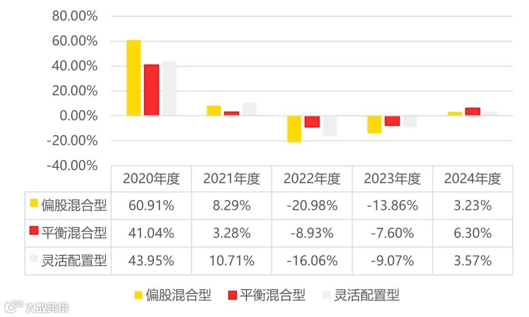 三类混合型基金的年度平均收益率对比