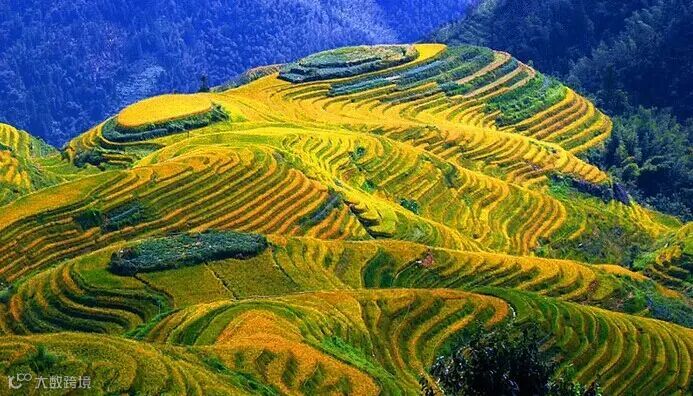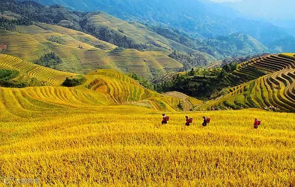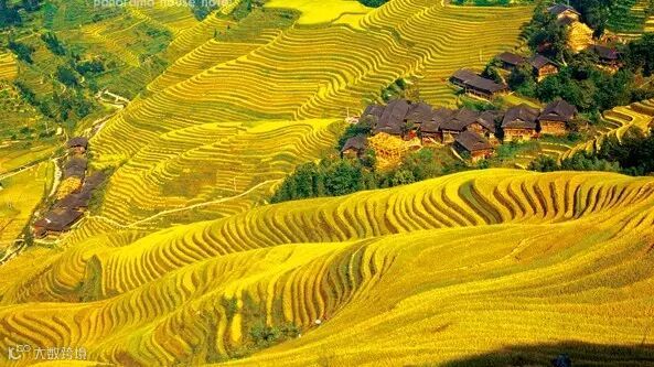 ★黄金梯田:龙脊梯田--世界梯田之冠,人与自然的杰出之作!观赏全年至美金秋龙脊黄金梯田,金灿灿的稻
