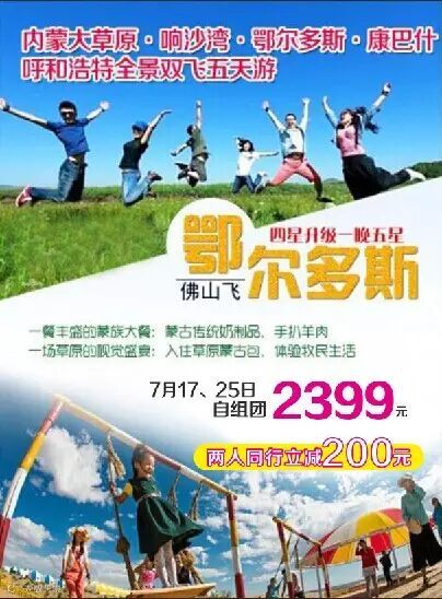 >>>>内蒙大草原、鄂尔多斯、响沙湾、呼和浩特、全景双飞五天游
