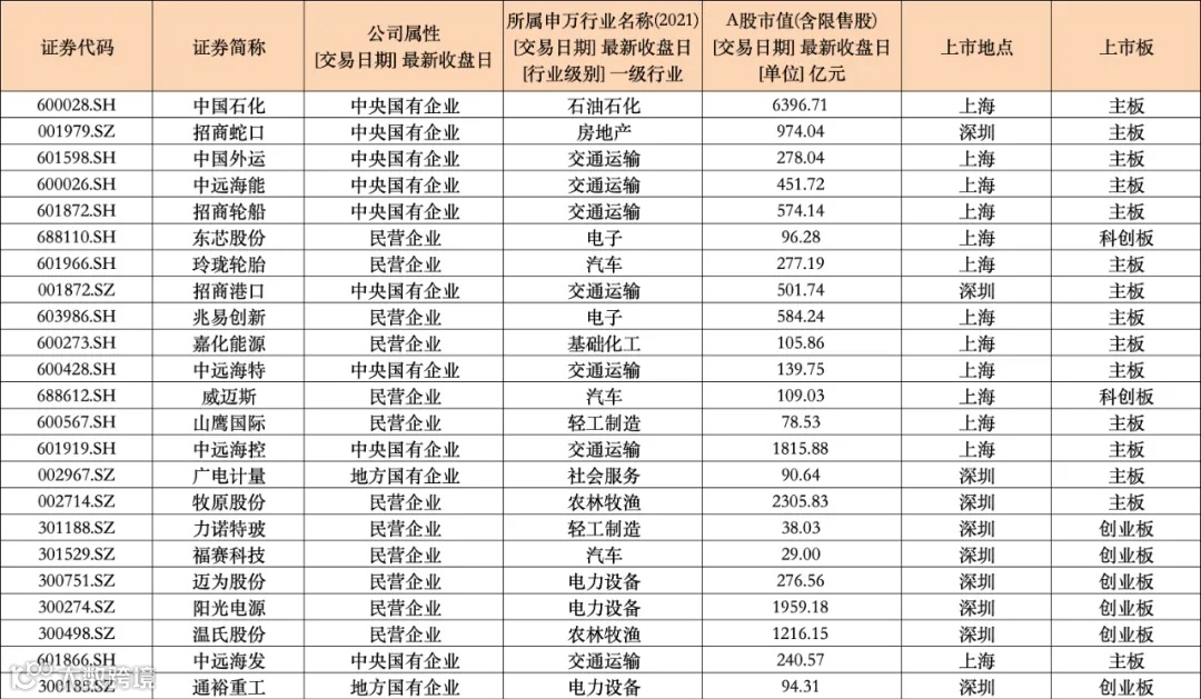 记者据上市公司公告梳理,首批公告获得回购增持贷款的上市公司有23家。发布回购贷款的公司有中国石化、招商蛇口、招商轮船、招商港口、中远海控、中远海发、广电计量、迈为股份、兆易创新、威迈斯、嘉化能源、温氏股份、福赛科技、阳光电源、山鹰国际、通裕重工、牧原股份;发布股东增持贷款的公司有中国石化、中国外运、中远海能、中远海特、东芯股份、力诺特玻、玲珑轮胎。