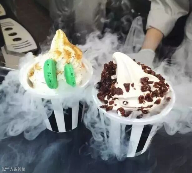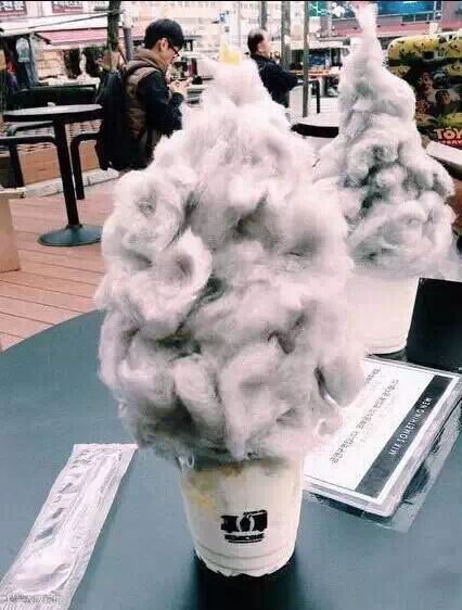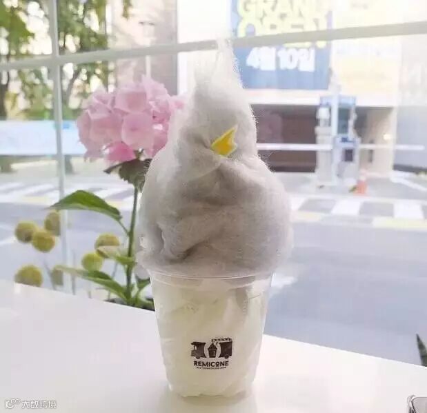 该店主打款乌云冰淇淋人气超高,样子新颖独特,口味也新奇美味。雪白的鲜奶冰淇淋上撒着跳跳糖,堆积着一团形似乌云的薄荷口味棉花糖,还搭配一个超迷你的闪电巧克力装饰,可爱到让人舍不得吃!韩币6100一个(折合人民币34元)。