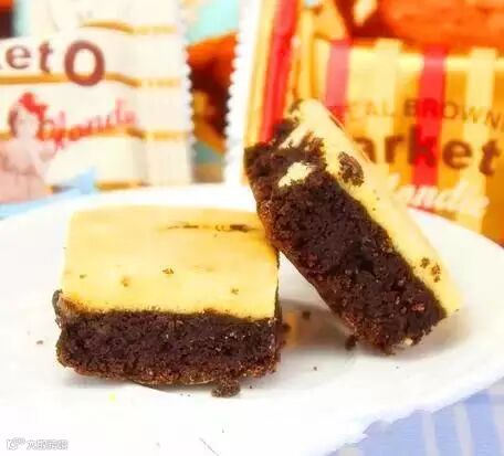 MARKET O的布朗尼蛋糕有巧克力和香草两种口味哦!纯正的巧克力质感,小方块状,中间镶着巧克力块,上面是厚厚的香草白巧克力夹心,巧克力小丁在口腔里浓烈滑润的化开,加上松软的布朗尼,好紧实又松软的口感哦!最关键的一点:这还是健康低卡不会发胖的零食哦!