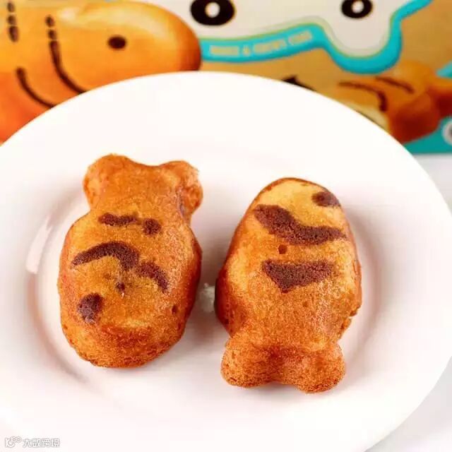 可爱的小鱼形状,色泽金黄,而且很好的锁住了蛋糕水分,软软的!还有浓浓的巧克力酱夹心哦!鱼鱼的造型让人都舍不得下口!使用鸡蛋制作的蛋糕外层也营养满满!大人小孩都爱吃!