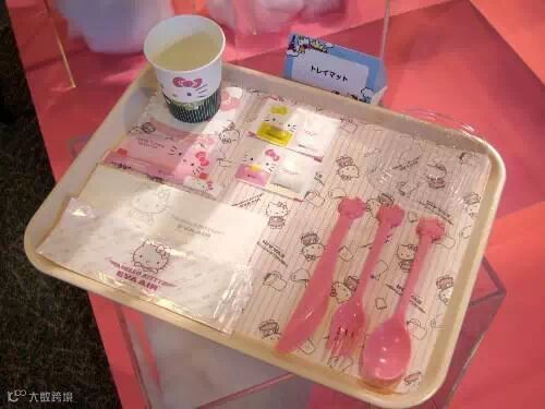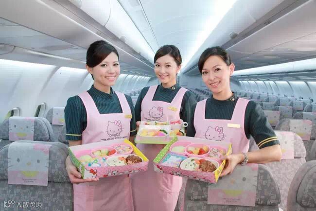 特别安排一程以著名卡通人物HelloKitty为主题进行设计的超炫彩绘班机。从机场CHECK-IN 开始,就可发现Hello Kitty元素无处不在,从登记证、行李牌、到餐巾纸、纸杯、餐具、到处可见可爱的Hello Kitty元素。就连美丽的空姐服都带有可爱元素:特制的Kitty围裙、徽章。