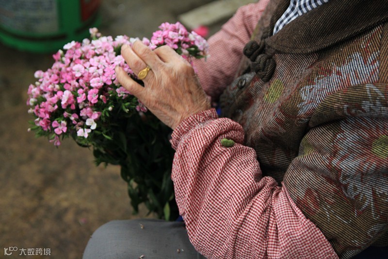 在大理,五元钱便可以从老奶奶手里买来美美的鲜花~!