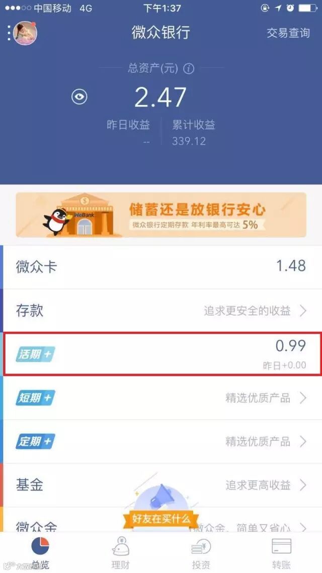 打开微众银行APP,即可看见活期+的身影,一键申购,非常便捷!