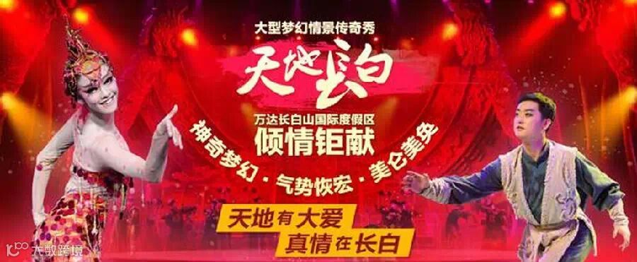 1、 《天地长白》:万达大剧院大型梦幻情景演艺秀(每周二-周日19:30-21:00,周一停演,淡季视情况停演,不含门票120元/人),该表演充分挖掘利用长白山地区丰富的历史、人文与民俗传统,紧紧围绕“人参”传奇故事的主题和情节走向,给人以强烈的视觉艺术冲击与感染。