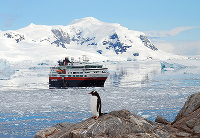 2、乘坐专为南北极水域而设的海达路德“前进号”游轮穿越南极圈,目前全世界超过30万人进入了亚南极区域,但能够进入南极圈的游客仅三千人不到,目前也只有“前进号“可以作为旅游船进入南极圈范围(共15天14晚)。