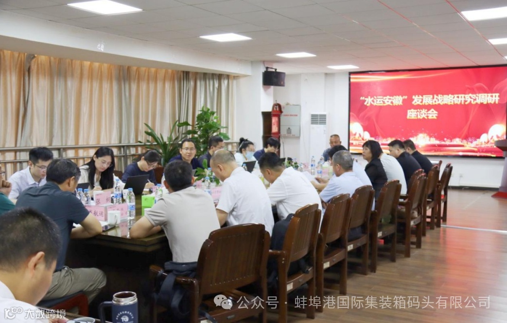 6月18日上午,蚌埠市交通运输局、市地方海事(港航)管理服务中心在蚌埠港公司组织召开“水运安徽”发展战略研究调研座谈会。交通部水运院物流中心专家学者,市交通运输局、市海事服务中心领导以及蚌埠港公司、中远海运、中外运、中谷物流、中粮生化等船运、货运和货主企业出席会议。