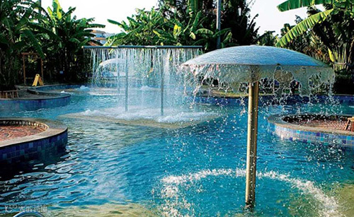 100%纯优质天然温泉水, 43个形状不一、功能各异的温泉池错落有致地分布在绿树林荫之中。温泉泡浴、温泉冲浪、温泉SPA、温泉鱼疗、温泉磁沙、养生保健、干湿蒸、水上拓展等项日一应俱全。在这里,当你大半身子蜷缩在温泉池内,在水雾氤氲之中,享受难得的恬淡自然,身与心,都会得到彻底的释放。