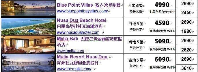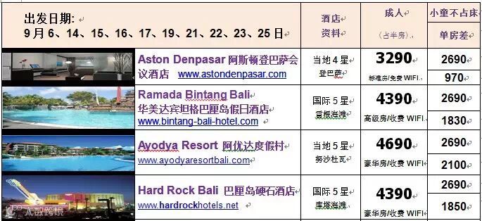 << 价格包括:来回机票(含税),4晚酒店,每天早餐,机场来回酒店共2程接送不含香港和印尼机场离境税和印尼落地签>> |